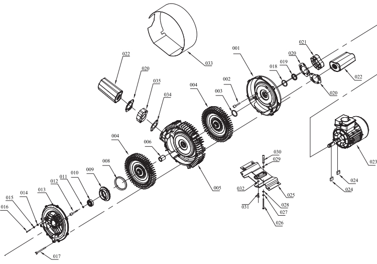 | 11 | 墊片 | 23 | 電機(jī)總成 | 35 | 法蘭 |